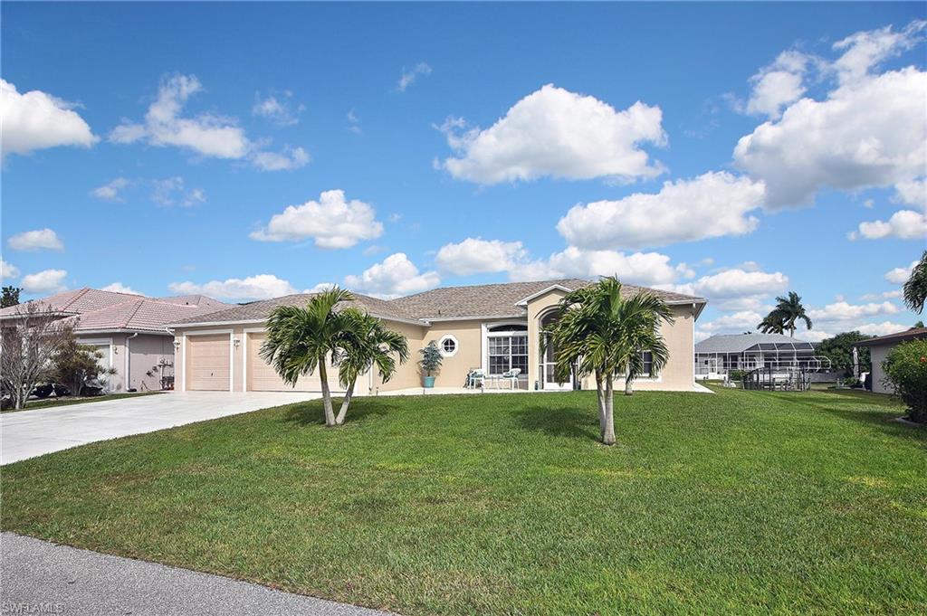 Motivated seller and original owner accepting offers on this beautifully maintained home located in a desirable area close to shopping, restaurants and entertainment. Built in 2002 and on the canal only 25 minutes from the Caloosahatchee River. 1605 sq. ft. home with dock and boat lift with new canopy in 2023. Home is wired throughout for any additional audio system. Split floorplan with 3 bedrooms, ( large master bedroom) 2.5 bathrooms, 3-car garage with 3-car driveway, new water heater 2022, new air handler (AC & Heat) 2022, new roof 2023, new overhead garage door pulley 2023, hurricane garage door for sustained winds of 150mph, manual hurricane shutters, irrigation system, wireless alarm system, New washer & Dryer, 9.4’ ceilings throughout, oversized under trussed lanai 14’ x 28’, lanai is plumbed for wet bar, added interior insulation at time of construction, 2 ft .concrete walkway around home plus added concrete front & back for added patio space, new exterior lights & ceiling fans 2023, new interior bedroom fans 2023, new interior & exterior paint in 2024. Plenty of room on this beautiful lot for your customized pool. Programmable exterior garage lights. NO FLOODING FROM HURRICANE IAN nor any other storm. Call today to book your private showing.