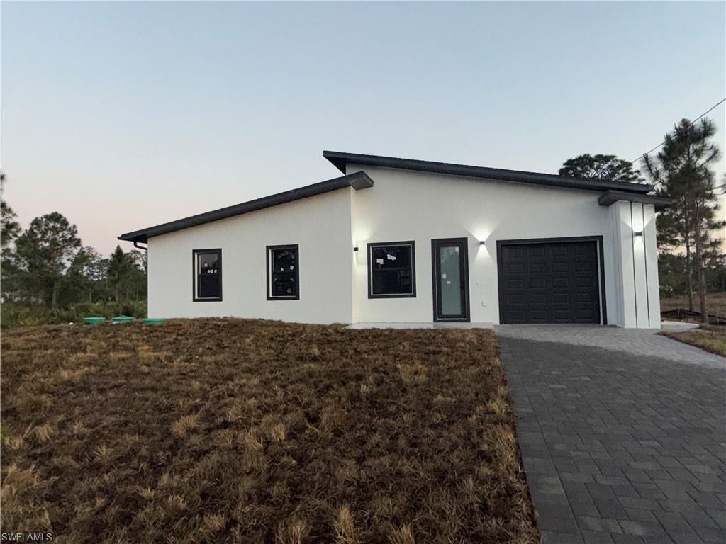 BUILDER IS GIVNG $10,000 TOWARDS CLOSING COST!!! Welcome to this stunning, newly constructed modern home offering 3 spacious bedrooms and 3 full bathrooms. Designed with a sleek minimalist aesthetic, the home features a crisp white stucco exterior accented by black window trims and a matching garage door. Inside, the open-concept layout is filled with natural light and showcases luxury vinyl plank flooring, high ceilings, lighting, and a striking modern chandelier. The kitchen is equipped with high-gloss white cabinetry, and stainless steel appliances. The garage has the ability to be turned into a 1 bedroom with 1 bathroom. A paved driveway leads to the attached 1-car garage, and the entire property sits in a peaceful, - perfect for families, first-time buyers, or anyone seeking a move-in-ready home with modern flair and functional elegance