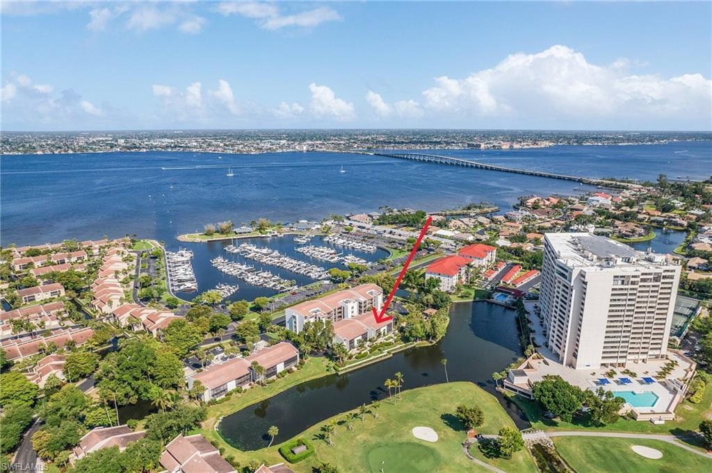 Get a SUPER DEAL and enjoy the active lifestyle of The Landings in this spacious 2-bedroom top-floor unit with great view over the lake and golf course. Bask in the joy of beautiful mornings from the eastern exposure lanai, a peaceful place to sip coffee while reading the paper or watching the golfers a short distance away. Take a walk-through from the virtual tour! The condo features an updated kitchen with granite counters, stainless appliances, new water heater and air conditioner, vaulted ceiling in living area, assigned under-building parking, being offered turnkey. Unwind and enjoy the shady twilight hours on the lanai with a beverage after a day of your favorite activities. Stroll a short distance and savor a waterfront dinner and drinks at sunset at the newly renovated Wheelhouse Grille. The Landings Yacht Golf &Tennis Club is a highly active, gated, waterfront country club community with a deep-water GULF access marina via no bridges on the Caloosahatchee River, the intercoastal water way from the Gulf to the Atlantic. Your very affordable monthly club fee INCLUDES AMENITIES of 18-hole golf, tennis on 13 Har-Tru courts that are lit for night play, 8 courts for pickleball, a wet or dry marina slip for up to a 65' boat*, waterfront picnic area, 2 restaurants, clubhouse, fitness center, heated & chilled resort & lap pool, bocce, and no minimums. Come and see for yourself why The Landings is SW FL's best kept secret!