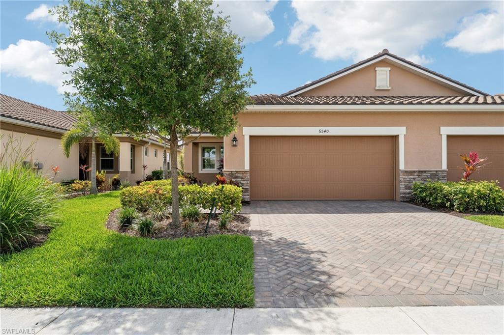 Step into a world of elegance with this meticulously cared-for 2-bedroom plus den, 2-bathroom condo nestled in the serene, gated community of Bonavie Cove, right in the heart of Fort Myers. Imagine sipping your morning coffee on the lanai, surrounded by tranquil water views and the enchanting sights and sounds of local wildlife, all while basking in the glow of stunning sunrises. Inside, you'll find a bright and airy open-concept layout adorned with stylish tile flooring throughout. The spacious living and dining areas seamlessly blend into a chef's paradise of a kitchen, featuring a generous island with a breakfast bar, modern stainless steel appliances and an abundance of storage solutions. The pantry is uniquely enhanced with a custom-built spice rack, making cooking a delightful experience. Retreat to the expansive primary suite, complete with a huge closet and a luxurious ensuite bathroom featuring dual vanities and a spectacular shower—your personal oasis! A well-appointed second bedroom and full bath ensure your guests feel right at home, while the versatile den serves as the ideal office, hobby space, or peaceful sanctuary. Additional conveniences include a dedicated laundry room, three pre-installed TV mounts, a Ring Doorbell for added security, and thoughtful touches that enhance your living experience. The impressive 2-car garage stands out with its polished epoxy flooring, ceiling storage system for 24 totes, and a well-equipped workbench area, complete with lockable cabinets and pegboard for all your creative projects. Bonavie Cove offers a lifestyle of leisure with resort-style amenities, including a sparkling pool, an inviting clubhouse, and a state-of-the-art fitness center. Don’t let this opportunity slip away—embrace stylish, low-maintenance living with breathtaking water views in an unbeatable location!