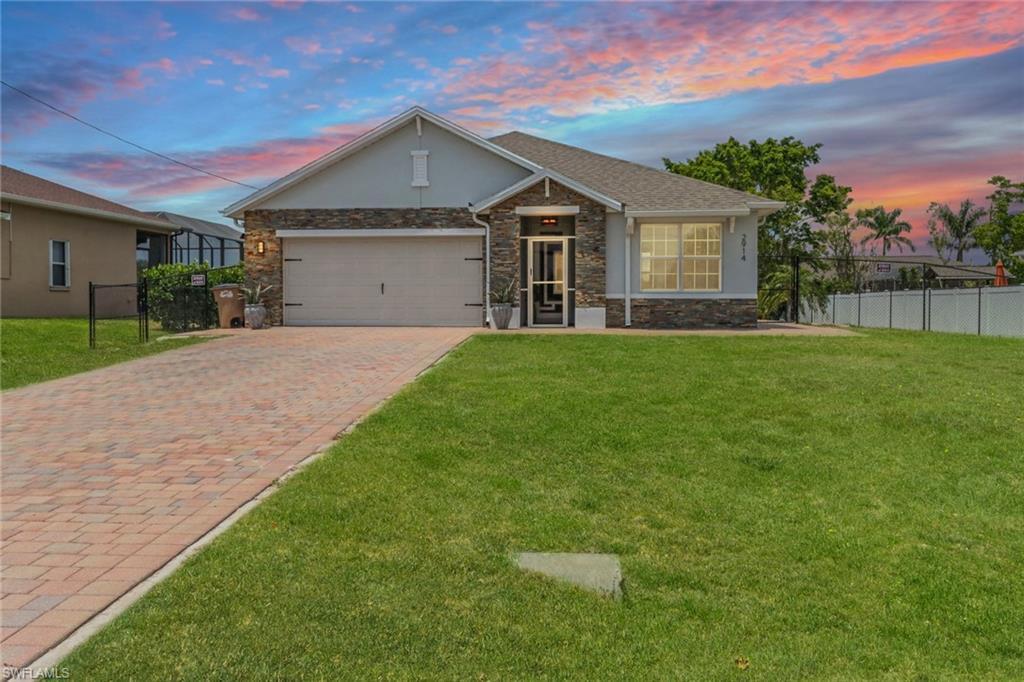 Welcome to your dream home in Cape Coral! This stunning single family home boasts 3 bedrooms, 2 bathrooms, and a spacious 2 car garage. The interior features luxurious granite counters, sleek stainless steel appliances, and elegant tile flooring throughout. The kitchen is a chef's delight with 42'' cabinets and plenty of counter space for meal prep. The home has been freshly painted on the outside, giving it a modern and inviting curb appeal. The energy-efficient LED lights brighten up every room, creating a warm and welcoming atmosphere. Located in a desirable neighborhood, this home is just minutes away from a variety of restaurants, offering a diverse selection of cuisines to satisfy any craving. Whether you're looking for a cozy family dinner or a night out with friends, you'll find plenty of options to choose from. Don't miss out on the opportunity to make this beautiful home yours. With its prime location, modern amenities, and stylish finishes, this property is sure to impress even the most discerning buyer. Schedule a showing today and start envisioning the life that awaits you in this Cape Coral gem.
