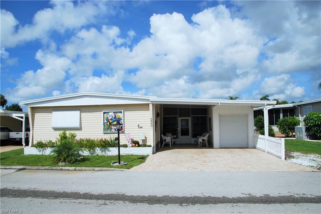 Experience an airy, light-filled retreat with impressive updates and sweeping golf course views in the coveted Six Lakes Country Club. This standout home has undergone a series of essential updates, making it truly exceptional. Recent enhancements include an A/C unit installed in 2023, a 2022 water heater, and a post-Ian roof added in 2022. The extra-large Florida Room now features elegant river rock flooring, perfect for year-round enjoyment. The kitchen is a true showstopper, featuring newer quartz countertops, a newer sink, a faucet, a garbage disposal,