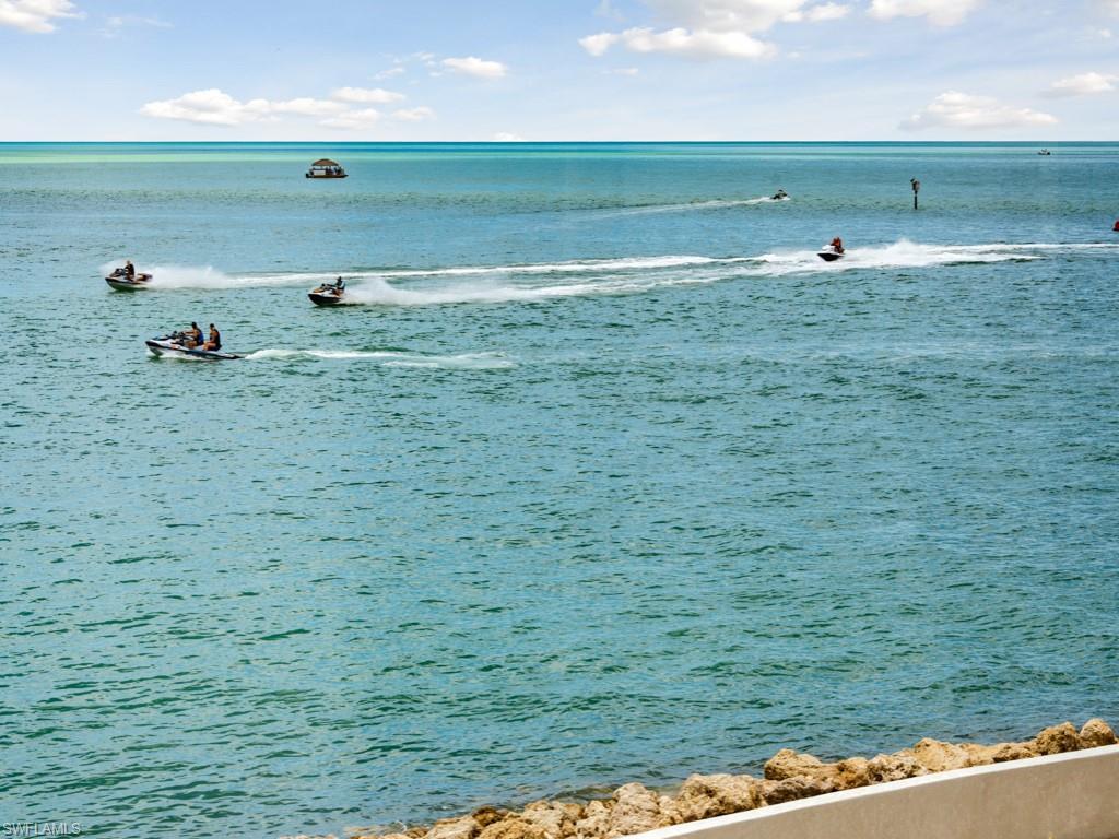 Wide open views of the Gulf abound from this gorgeous residence located in La Pointe at La Peninsula. This beautiful 2 bedroom, 2 and a half bath residence is situated at the tip of La Peninsula on charming Isles of Capri. With desirable western exposure, you will be able to experience exceptional views of the sparkling blue waters of the Gulf and breathtaking sunsets from the comfort of your own home. The interior is bathed in natural light and boasts timeless travertine flooring throughout. The kitchen features granite counters, custom cabinetry, and stainless appliances. The master suite is a private oasis with large walk-in closet, lanai access, and en-suite bath featuring some of the most breathtaking views available from the jetted tub, dual sinks, and walk-in shower. Enjoy the Florida sunshine and fresh salt air on your private, screened lanai while watching dolphins and manatees play. This is the perfect place to enjoy a peaceful moment at the end of the day while taking in the stunning sunset colors. Impact sliders and electric shutters provide extra peace of mind and security. La Peninsula is a gated community and offers gorgeous tropical landscaping, club house, large pool, waterfront walking path, and more. Isles of Capri is ideally located near both Marco Island and downtown Naples. Do not hesitate to make this island home your piece of paradise.