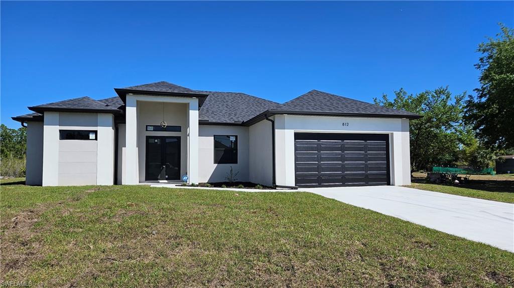 Modern Luxury Living —total 2,510 sqft of Stunning New Construction! This brand-new, high-quality home features soaring high ceilings and 8-foot doors, elegant premium tiles throughout (even on the spacious lanai), and impact-rated windows and doors for your peace of mind. Enjoy the convenience of an underground electric connection :means NO visible power lines ! The heart of the home is a chef’s dream kitchen, complete with stone countertops & backsplash, a jumbo waterfall island, stainless steel appliances, and fine custom made cabinets. Brilliant LED lighting adds a sleek, modern touch throughout. The master suite is a true retreat, offering two separate walk-in closets and a spa-inspired bathroom with a stunning freestanding tub. Every bedroom comes with its own walk-in closet — a rare luxury in this category! The versatile garage, finished with a stylish epoxy floor, features side access and a window, easily transforming it into a multipurpose space. Enjoy the endless outdoor living with a huge lanai, and take advantage of a spacious laundry room with a granite countertop and abundant custom cabinets. Guests will love the convenient bathroom with exterior access — ideal for a future pool. Every corner of this home is filled with thoughtful luxury touches . Come see it in person and start living your dream! Ready to move in/ C.O ready". Partner with mortgage brokers to help buyers get quick pre-approvals