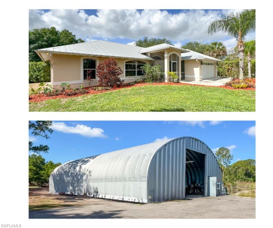 Rare Opportunity – Residential Comfort Meets Business Potential. Discover the perfect blend of work and home life with this beautifully maintained 1.59-acre property—an ideal setup for entrepreneurs, hobbyists, or anyone seeking the freedom to live and operate a business on the same land. The standout feature is a 3,200 sq. ft. metal building equipped with two roll-up doors, full electrical, and a separate power meter—ideal for use as a workshop, warehouse, or vehicle storage. The updated home offers a host of modern upgrades, including a paved driveway (2023), updated kitchen appliances (2022), fresh interior paint (2022), a newly added closet (2022), renovated master and guest bathrooms (2022), a brand-new water heater (2025), and a 400 sq. ft. enclosed lanai with its own A/C unit (2023). Additional features include a detached carport, a fully fenced and landscaped yard with mature fruit trees, a five-zone irrigation system, seamless gutters, and HVAC system (2019). This property is cleared, move-in ready, and located outside of a flood zone, o?ering peace of mind along with exceptional functionality. Whether you're looking to launch a home-based business or simply enjoy the space and versatility, this is a one-of-a-kind opportunity you won’t want to miss.