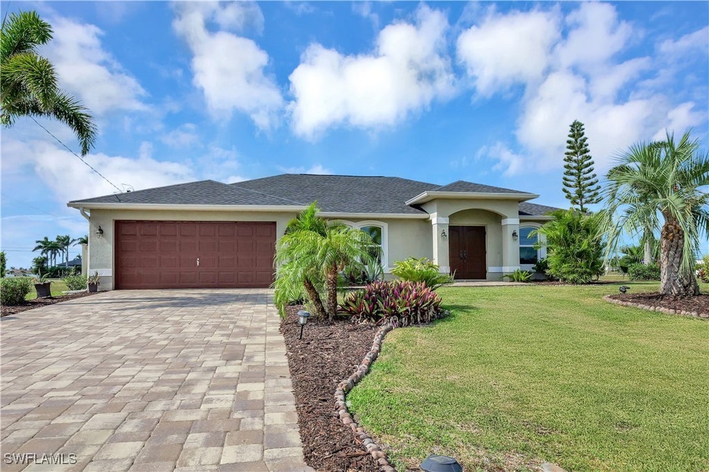 Just reduced! Immaculate larger 3 bedroom+ den, 2 bath ranch home with a spacious screened-in lanai and south-facing heated salt water pool. Gorgeous tropical plantings, both in front and back distinguishes this NW Cape Coral home from the ordinary one. BRAND NEWLY PAINTED INTERIOR and GARAGE floors and wall! Lovingly cared for, gently lived-in, it features a NEW ROOF and central air conditioning, IMPACT RESISTANT FRONT DOOR as well as IMPACT RESISTANT WINDOWS that need no shutters, with TRANSFERABLE WARRANTY! This means LOWER HOMEOWNERS INSURANCE! Other improvements include a BRAND NEW HOT WATER HEATER and BRAND NEW WELL PUMP, water filtration system, and paid solar panels that make your monthly electric bill almost disappear! This home must be seen to be appreciated! Expansive granite-topped island separates the kitchen from the spacious great room overlooking the enclosed lanai, heated salt water pool and landscaped backyard. CLOSETS GALORE! Wood flooring in all 3 bedrooms with a split bedroom floorplan. King-sized primary bedroom with HUGE WALK-IN CLOSET and ensuite bathroom. With a perfect location conveniently just minutes away from cute villages, amazing waterfront dining, shopping, marinas, parks & recreation and everything else that Cape Coral and SW Florida is known to offer. Feel like you are in Paradise here at 3510 NW 8th Terrace, without being isolated! This home is in move-in ready condition, just unpack and enjoy! Be it your permanent or retirement home, vacation retreat or Airbnb, you can't beat the sunsets and sunrises you will witness here at 3510 NW 8th Terrace. Don't buy an ordinary home in Cape Coral. Choose one that is extraordinary! That would be this home at 3510 NW 8th Terrace, offering you so much more than the rest! Home Warranty Plan available. Don't miss out!