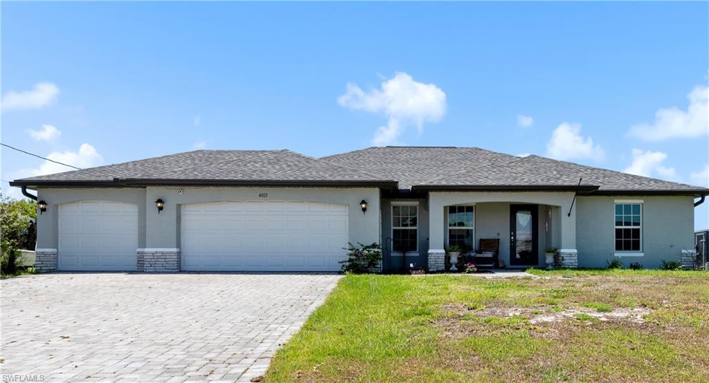 YES! This NEWER home has A 3 CAR GARAGE, 4 bedrooms, 2 baths, a screened in lanai and sits perfectly between the growing area of Cape Coral and Charlotte Harbor. Built in 2022 everything in the home is newer and has UPGRADED features such as: GRANITE in the kitchen and bathrooms, STAINLESS appliances, TILE in the main living, a LARGE PAVER driveway, fans in the rooms, Built-INs in the master closet, two walk-in closets in the master bedroom and an inviting front porch. The location is growing and has new shopping and restaurants nearby. BOATERS may love that they are close to marina's and boating opportunities all around. Matlacha, Pine Island, Charlotte Harbor, Burnt Store Marina and more all within a few miles! Some furniture and curtains could stay if desired. You can move in as soon as you can close!