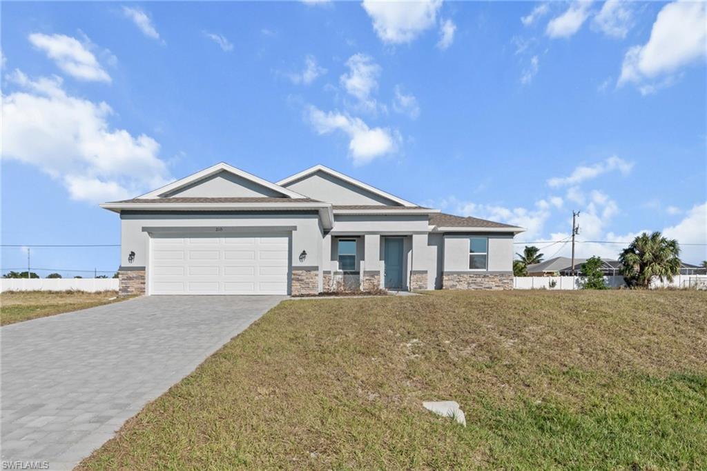 New Construction Energy Efficient Home in Cape Coral. Just Finished and packed with over $20,000 in features including an upgraded appliance package, spray foam insulation, a brick paver driveway, a hybrid water heater, and pre-wired solar panel ready. Featuring 3 bedrooms, 2 bathrooms, and a 2-car garage. Open floorplan with vaulted 9’4” ceilings throughout and lots of windows for natural light. The kitchen is open to the main living areas. It features brand-new energy-efficient appliances, granite counters, a pantry, a center island with bar-top seating, and a dining area overlooking the backyard. Relax in the spacious living room overlooking the lanai and backyard out of the sliding glass doors. The master bedroom offers a nice retreat, and the master bathroom includes a walk-in closet, dual vanity with granite counters, and a walk-in shower. Room for everyone! The spare bedrooms are large and offer great space for families, guests, or a home office. The lanai is the perfect place to enjoy the Florida weather and BBQ and enjoy evenings and weekends in your private backyard paradise. Enjoy the upgrades and savings every month from this Department of Energy Zero Energy Ready Home with insulation, LED lighting, 50 Gal Hybrid Heater, 16 Seer variable speed A/C, Wi-Fi thermostat, Low-E vinyl dual pane windows, and Energy Star Appliances. For an additional cost, the home can be delivered with Solar Panels you own – no separate loan – for no electric bill or significant savings. Not your typical Cape Coral Home – this includes several upgrades, savings, and smart features you will not find with other houses. Located near the future 7 Islands may include restaurants, shopping, marinas, a park, green space, and possibly even a beach area! BOATERS are located near several public boat launches/ramps and Matlacha for Gulf Access, open water, world-famous fishing, beaches, and barrier islands. GOLFERS - Very close to Palmetto Pines Country Club and Coral Oaks. Close to shopping, dining, events, Starbucks, Target, Publix, and the area’s top-rated restaurants.