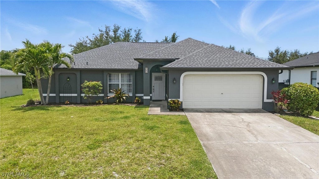 Well-maintained 3-bedroom, 2-bathroom home in Cape Coral with an open floor plan. The living, dining, and kitchen areas connect for a functional layout, and the kitchen features updated refrigerator (2024), new dishwasher June 2, 2025 with 3 year warranty and ample counter space. Several major updates were completed in 2023, including a new roof, new sliding glass door, new front door, updated garage mechanics, and full exterior repaint. The backyard offers space for outdoor use or future enhancements. Conveniently located near shopping, dining, and main roads.