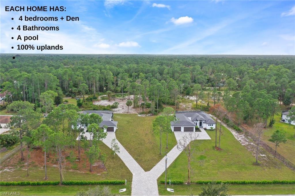 Rare opportunity! Two homes in Golden Gate Estates, each offering over 2,400 square feet of living space under air with 4 bedrooms each and a den, on a beautiful 100% uplands lot. These well-designed homes feature impact-resistant windows and doors for both storm protection and noise reduction, a mature Clusia hedge providing natural privacy, and concrete block construction. Each home offers the same floor-plan and includes a private pool with spa and a full reverse osmosis water filtration system. Whether you're looking to accommodate extended family, invest in rental income, or enjoy added space and flexibility, these properties are offered both individually or as a package—making them an exceptional opportunity in a central, sought-after location.