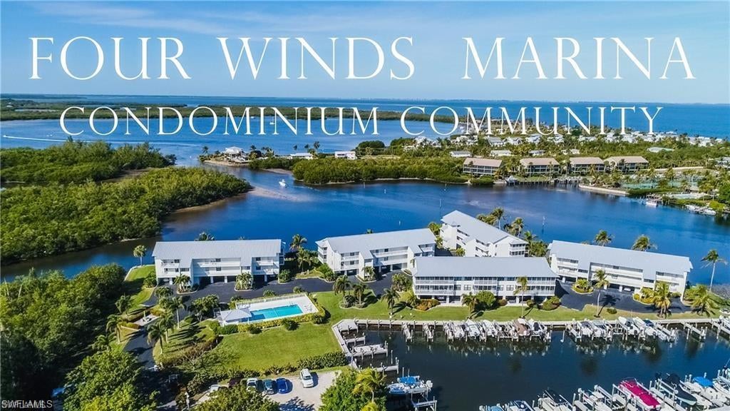 This a beautiful top floor end-unit condo overlooking Four Winds Marina and Jug Creek. The kitchen is bright white with wooden cabinets and solid surface countertops. Kitchen pantry and large laundry room with many white cabinets over the washer/dryer. All impact windows and doors. Plantation shutters though out and privacy screens on the sliders. This beautifully decorated condo is being sold turnkey, so just bring your clothes and fishing gear and start living the island lifestyle that Pine Island has to offer. All of the buildings in the Four Winds Marina Condo complex are concrete/stucco (not wood pilings or wood construction. All new metal roofs installed in 2022. On site full service marina and seafood restaurant. All pavered entry and parking. Bokeelia is truly one of the most beautiful areas of Pine Island. Bring your boat for leased storage at the on-site marina. There are also many fishing charters located at the marina for fishing the flats or offshore in the Gulf of America. 24-hour patrolled security on the premises.