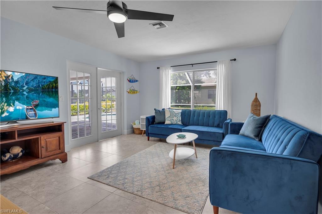 Welcome to this beautifully updated 3 bedroom, 2 bathroom single-family home featuring a fully screened and heated pool, perfect for year-round enjoyment. When you walk through the front door you'll be greeted by the stunning open floor plan and coastal-inspired kitchen with white shaker cabinets, sleek new appliances, a large island ideal for entertaining, and imported tile flooring that adds a touch of elegance - truly the heart of this beautiful home. The open floor plan offers seamless flow between the living, dining, and kitchen areas, with imported tile throughout for easy maintenance and a modern feel. The split floor plan provides privacy for the large spacious primary suite with private ensuite, while the additional bedrooms offer flexibility for guests or a home office. Enjoy peace of mind with a 2020 roof and brand-new screens over the lanai. Ideally located just moments from Cape Harbour Marina, you're close to waterfront dining, boutique shopping, and vibrant local entertainment. This home effortlessly blends comfort, style, and convenience in one of Cape Coral’s most sought-after neighborhoods.