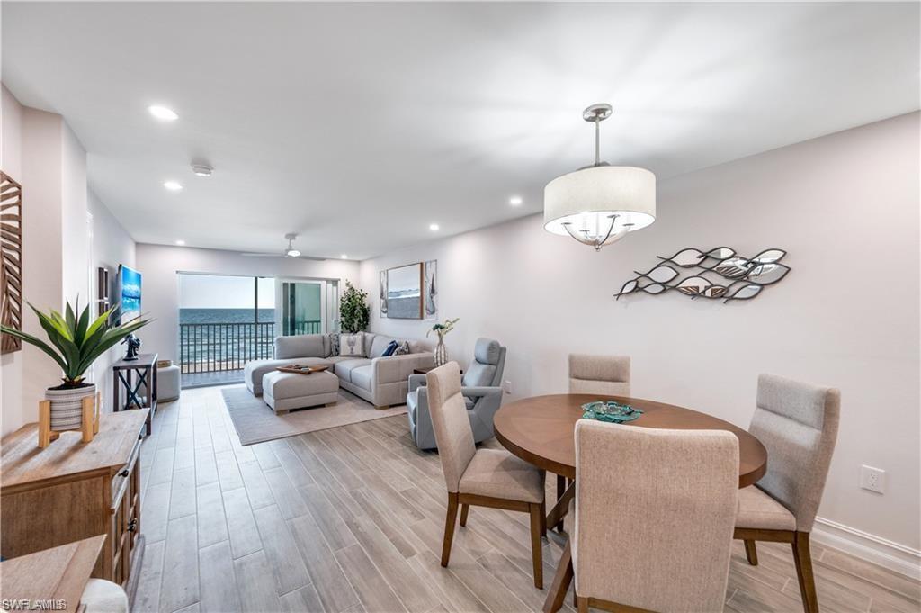 Presenting the best value for a completely renovated beachfront condo in all of Casa Bonita development! This magnificent turnkey light and bright unit is a one-of-a-kind opportunity that is priced to sell. New construction throughout with beautiful workmanship and custom renovations. Remastered kitchen with designer Samsung appliances. Plank tile flooring with a coastal wood look throughout. Low-profile recessed dimmable LED lighting in all rooms. New everything such as electric hurricane shutters, glass sliders and new impact window. All new mechanicals including air conditioning, electrical panel, and water heater. The new open living areas boast majestic gulf views from the living room, kitchen and dining rooms, main bedroom, and your Gulf view patio! The condominium is on the easy access second floor by elevator or one flight of stairs and comes with a large balcony/terrace right off the front door entrance offering ample space to lounge for morning sunrises or to wind down after a day on the beach. This is a huge PLUS! On Big Hickory Island beach between Barefoot Beach and Lover's Key, the beachfront stretch leads to Hickory Islands point, making your morning, afternoon and evening sunset walks amazing. The condominium has a designated covered parking spot and a convenient ground-floor storage room closet for all beach and sports gear. These areas as well as all common areas, pool and spacious community lounge are currently in the process of renovations and will be completed with standards above and beyond. You will want to put this one on your list to see!