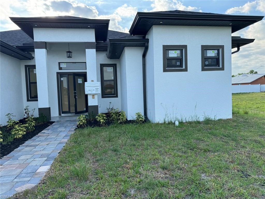 BEAUTIFUL BRAND NEW HOME! EXCELLENT LOCATION,THE MOST DESIRABLE AREA, IN A QUIET NEIGHBORHOOD, MODERN STYLE IN CAPE CORAL FLORIDA WITH 3 BEDROOMS, 2 BATHROOMS, SPACIOUS 2-CAR GARAGE. HIGH IMPACT WINDOWS AND DOORS. TILES THROUGHOUT PLENTY OF ROOM FOR A POOL. THIS HOME IS READY TO MOVE-IN AND WAITING FOR A FAMILY TO ENJOY THE AROMA. PUBLIC WATER IS CONNECTED.