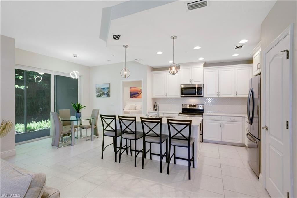 BEST VALUE 2BR CONDO UNIT FOR SALE IN PRIVATE GATED RICHMOND PARK, ASKING BELOW APPRAISAL. Enjoy Florida living at its finest. LOCATION LOCATION LOCATION - Highly sought after location just 4 Miles to I-75 Highway, 9 miles to the beach, and 12 minutes to Ave Maria campus. And just a short 4 minute ride to the new Founders Square shopping center featuring restaurants, medical facilities, hair and nail salons, health and fitness businesses is an added convenience. Condo is A FIRST FLOOR 'KESWICK' CORNER UNIT WITH NO STAIRS, AND IS MOVE-IN READY FOR IMMEDIATE OCCUPANCY. Entertain in luxury style in this immaculate and bright corner end unit 2BR/2BA condo, with modern finishes, wide plantation shutters on all windows, and impact windows and doors - located in the highly desirable North Naples gated, eight-plex 104 unit carriage home community of Richmond Park. Your Condo Dues Include cable, wifi, water, sewer and rec facilities. Just pay your Electric! An open and split floor plan includes a modern kitchen equipped with all stainess steel appliances, newer refrigerator (2022), dishwasher (2022), and reverse osmosis filtration at sink(2022). Separate pantry, island with breakfast bar, separate dining area, and a large great room with built in TV area and utlility closet. 2 sets of large sliders along dining area and family room open up to a private and screened lanai with tropical landscaping, allowing in lots of natural light. The Master bedroom has large walk-in shower with dual sinks. linen closet and a giant walk-in closet. 2nd bedroom has a walk-in closet with a full bathroom and linen closet that can be used for guests. The Laundry room has a storage closet and shelving above the washer and dryer. An attached one-car garage also has a paver driveway. Other amenities include a large community clubhouse with indoor kitchen and dining area, outdoor grilling area, pool, spa and sundeck with shaded seating area. Beautifully landscaped entry and streetscape, lake and preserve views and most importantly, as a resident of Richmond Park, you pay NO COMMUNITY DEVELOPMENT DISTRICT (CDD) FEES that are often necessary to help pay for a community’s infrastructure. This condo checks all the boxes: location, gated access, corner first floor unit, open floor plan, impact windows and doors, no CDD and lots of community amenites. Do not miss your chance to own this immaculate 'piece of paradise' today. Call now for a private showing!