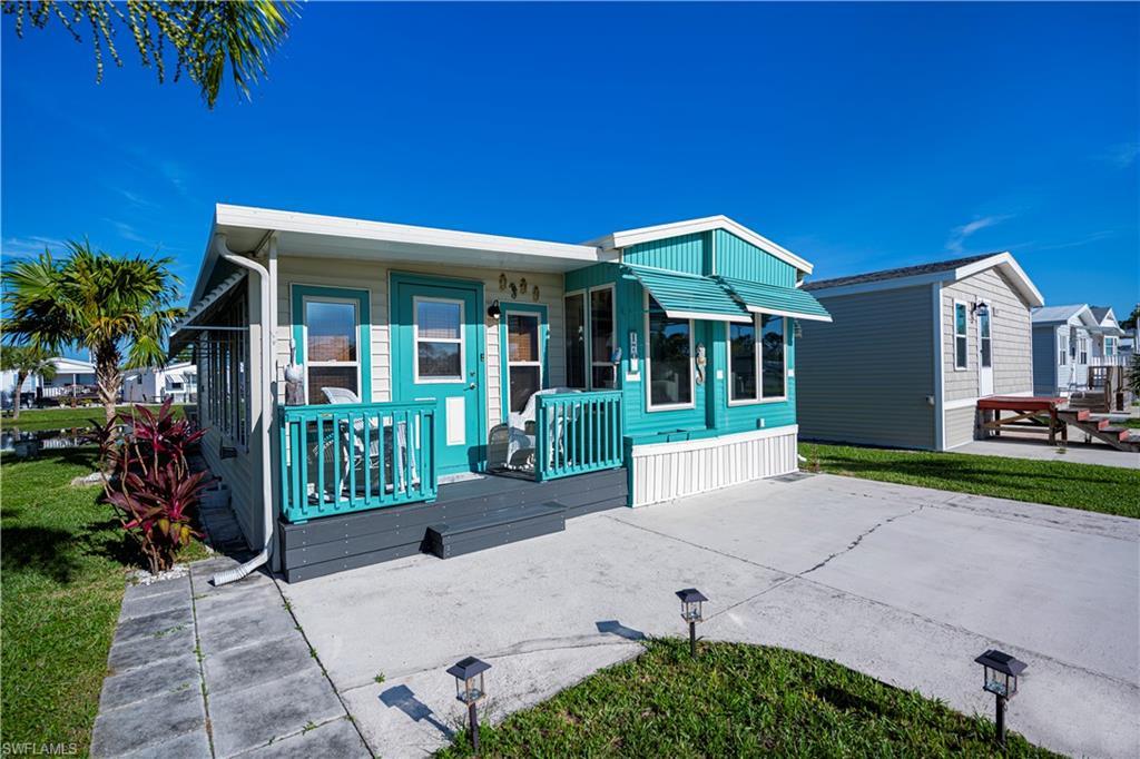 Beautifully maintained and upgraded remodeled lakefront manufactured home located in Fountain View RV Resort, 55+, showcasing a relaxed Florida Beach Décor and being sold turnkey with quality furnishings. This 1-bedroom, 1.5-bath home offers approximately 744 square feet of living space and is thoughtfully designed for comfort and coastal style. Enjoy tranquil lake views from the back patio—perfect for unwinding or entertaining. Upgrades include: newer air conditioning system, a fully remodeled kitchen with granite countertops and thermal windows, Florida Room with thermal windows and a front porch constructed with low maintenance recycled plastic decking. The spacious primary bedroom features a king-size bed, while additional accommodation includes two sleeper couches and a convenient Murphy bed. The in-home laundry room adds practicality for everyday living. Located directly across from the activity center, the property also benefits from extra green space and guest parking just steps away. Community features include a heated pool and hot tub, tennis, volleyball and basketball courts, bocce ball, shuffleboard, and a calendar full of fun and social activities for all skill levels. Conveniently located with easy access to Punta Gorda, Cape Coral, and Fort Myers, this home is just a short drive to beautiful beaches, boating, golf courses, restaurants, shopping, and entertainment. You own the land—no land lease here—and with very low HOA fees of just $230 per month, you’ll enjoy full access to community amenities without breaking the bank. Don’t miss the opportunity to own this rarely available lakeside gem. Schedule your private tour today and make this waterfront retreat your new home!