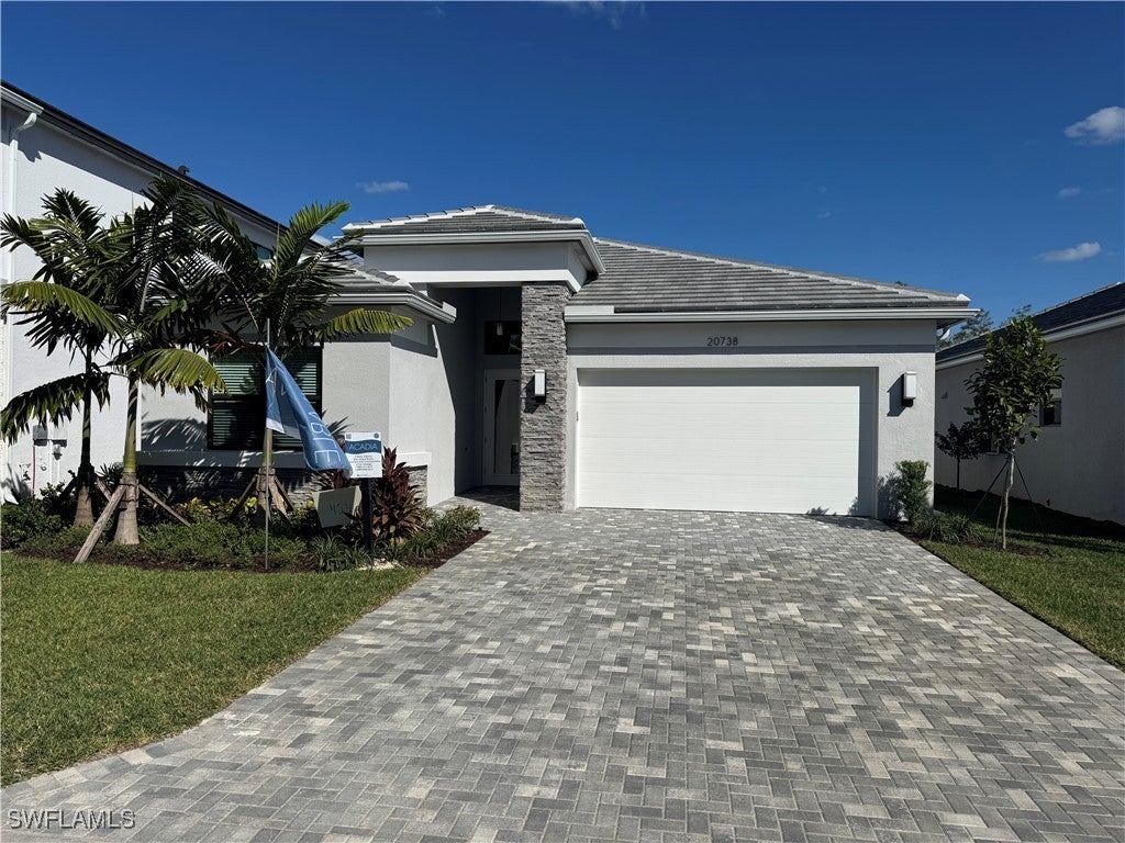 This brand new “Acadia” home will be ready in September or October. It’s in RiverCreek, the most popular new neighborhood in Estero. This home has Impact Windows, 2 bedrooms, a den, 2 bathrooms, and a 2-car garage. It has a big open space with the kitchen, dining, and living room all looking out to the backyard. The kitchen has shiny stainless steel appliances and pretty quartz countertops. The main bedroom has two big closets (one for him and one for her) and a bathroom with two sinks. RiverCreek is close to lots of stores and restaurants. The neighborhood has a huge clubhouse that’s 12,000 square feet with tons of fun things to do like a pool, fire pit, gym, indoor sports, card room, game room, tennis, pickleball, splash park, and a playground for kids.