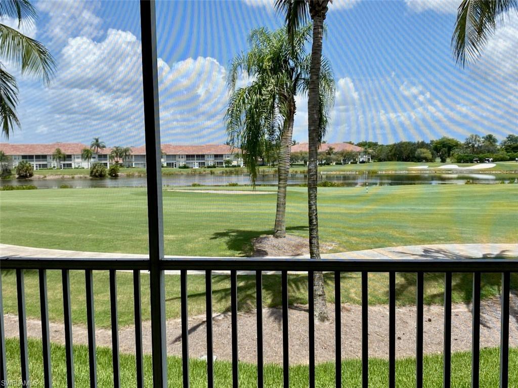 What an amazing view from this second floor larger Bradford floor plan, golf membership condominium in Legends Golf & Country Club. This two bedroom, two bath condo is a split bedroom condo offering an easter sun exposure from the lanai overlooking the newly redesigned 16th & 17th holes and lake. The lanai has a sliding door into the master bedroom and the living room. The master bath offers dual sinks, a soaking tub as well as a walk in shower. The property is bright and cheery with new carpeting and fresh paint and is being sold turnkey furnished with some exclusions. The buildings roof was just replaced a couple years ago. Legends Golf & Country Club is a beautiful guard gated community that offers Championship golf, grand slam tennis, pickleball, a 3,00 square foot clubhouse with 3 restaurants, an amazing resort style pool with waterfall and spa, fitness center with free classes, tons of planned activities such as concerts, dances, card games and much more. Golf members pay no additional fees for carts or greens fees. Legends is located in south Ft. Myers and is convenient to the airport, I-75, shopping, restaurants, spring training baseball games and the beaches.