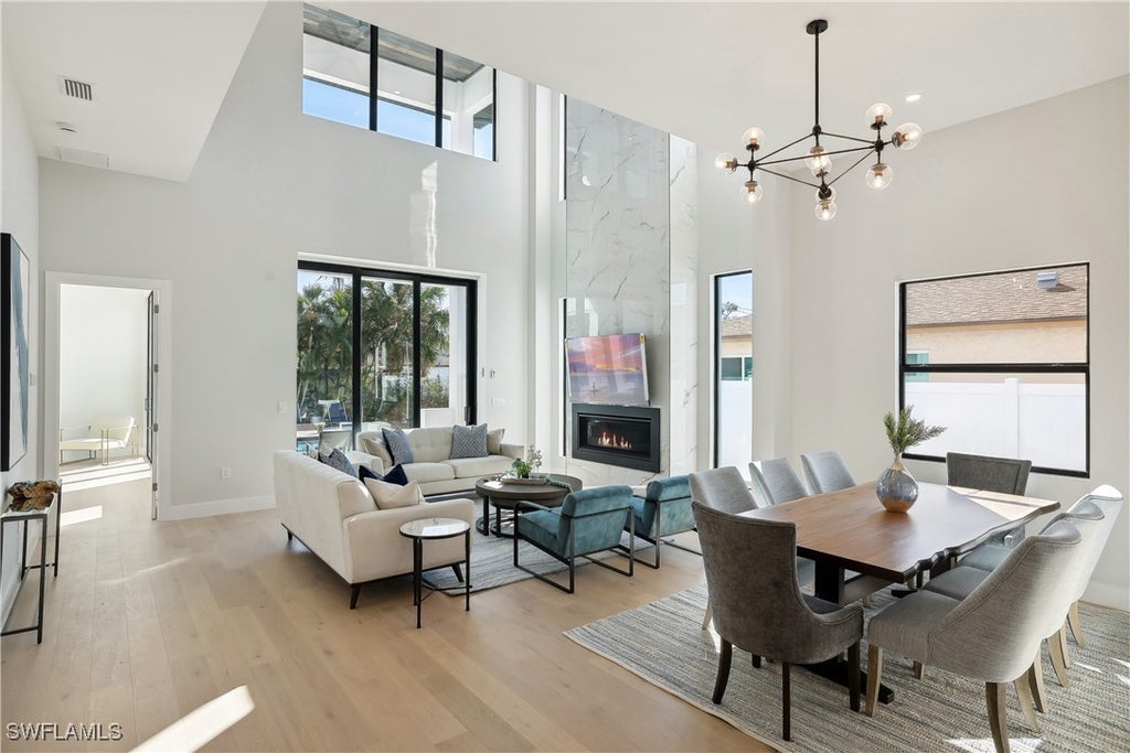 Welcome to Villa Mare #1, a brand-new coastal contemporary turnkey masterpiece just blocks from the pristine shores of Vanderbilt Beach and Delnor-Wiggins State Park. This 2024 construction home offers 3,190 square feet of luxury living in the heart of Naples Park’s coveted 500 block – no flood insurance required. Offered as a turnkey luxury rental, Villa Mare comfortably sleeps 11-12 guests and boasts a strong rent roll (available upon request), making it an exceptional opportunity for investors or those seeking a 1031 exchange. Enjoy flexibility with short- and long-term rental options in one of Naples’ most desirable and fast-growing neighborhoods, just minutes from Mercato, Waterside Shops, and premier resorts like LaPlaya and the Ritz-Carlton. Crafted with the finest Italian design and materials, this 4-bedroom, 4.5-bath residence features soaring ceilings (12’ first floor, 10’ second floor), rich wood floors, impact windows and doors, and a 50+ year metal roof. Each bedroom includes a walk-in closet and private en-suite bath, while the primary suite on the main level offers comfort, privacy, and designer finishes. The open-concept layout is anchored by a dramatic marble fireplace feature wall in the living area and a chef’s kitchen complete with Thermador appliances, gas cooktop, oversized pantry, and refined finishes throughout. Upstairs, a loft-style family room overlooks the great room and opens to a private lanai with sweeping views of Vanderbilt Beach and Pelican Bay. Whether you're investing or looking for a luxurious beachside retreat, Villa Mare delivers the perfect blend of modern elegance, functionality, and coastal charm.