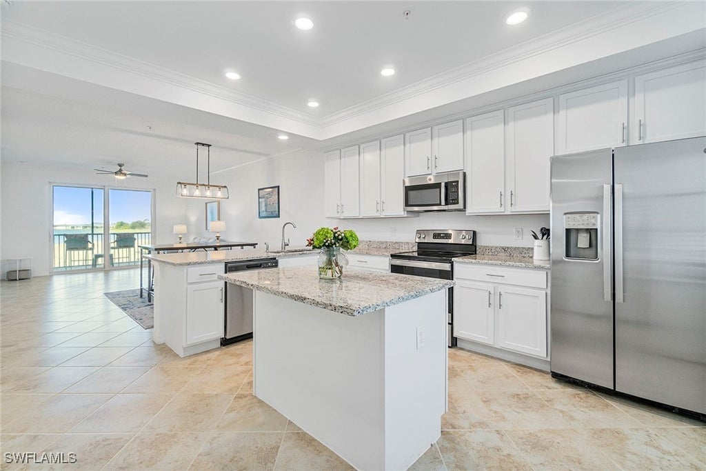 Wake up every morning to panoramic sparkling lake views and the lush, green golf course from this beautifully appointed condominium in Babcock National complete with a coveted golf membership! The stylish kitchen boasts granite countertops, a center island with breakfast bar, 2021 stainless steel appliances, recessed lighting, and a pantry for extra storage. Both bedrooms feature professionally designed custom closets that maximize space and storage capabilities. Dual walk-in closets with custom built-ins grace the primary suite, along with an immaculate tile walk-in shower, granite countertops, and a bonus linen closet. Additional highlights include tile flooring throughout, volume ceilings and elegant crown molding, as well as a spacious exterior storage closet. Unwind on your screened lanai with a drink in hand and soak up the unobstructed views of the golf course and tranquil lake. As a resident of Babcock National, you’ll enjoy a premier lifestyle with access to exceptional resort-style amenities. Stay active at the state-of-the-art fitness center, complete with locker rooms and saunas, or enjoy friendly competition on the pickleball, tennis and bocce ball courts. Cool off in the expansive resort-style pool, then relax with a cocktail at the poolside Tiki Bar. For an elevated dining experience, the newly opened Enclave Restaurant inside the elegant clubhouse offers a stylish retreat. Downtown Babcock Ranch beckons with a vibrant mix of dining, shopping and entertainment. Enjoy cozy coffee shops, an old-fashioned ice cream parlor, local food trucks, live music and a weekly farmer’s market. Explore charming boutiques or grab your everyday essentials at the neighborhood market—all just a short distance away. Whether you’re seeking a full-time residence, seasonal escape or investment opportunity, this residence offers a blend of lifestyle and value.