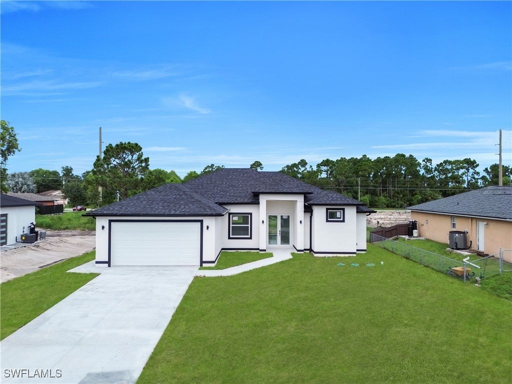 Beautifully crafted new construction offering the perfect blend of style, function, and location. This 3-bedroom plus den, 3-bathroom home features sleek all-white tile flooring and an open-concept layout ideal for both daily living and entertaining. The kitchen showcases a massive island with sparkling white granite countertops and white shaker cabinets, offering a bright, modern aesthetic. The third bedroom includes a private en-suite bathroom—perfect for guests or extended family. Step outside to a fully tiled lanai, thoughtfully designed with space to build your dream outdoor kitchen. Located just minutes from SR 82, this home offers easy access to Fort Myers, Naples, shopping, and dining. Don’t miss out on this must-see property in one of Lehigh Acres’ most convenient and fast-growing areas.