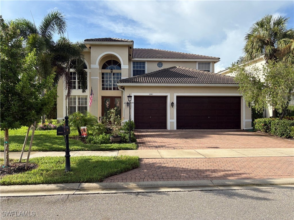 Step into timeless elegance in this 4,034 sq. ft. estate home in the highly sought-after gated community of Saturnia Lakes in Naples, Florida. Perfectly situated on a rare oversized corner lot with coveted southern exposure, this residence was designed for both everyday comfort and grand entertaining. The impressive two-story entry opens to 22-foot ceilings, a wrought-iron and hardwood staircase, and two stunning fireplaces framed with granite and stone mantels. A versatile loft overlooks the formal living and dining areas, while the open-concept family room and gourmet kitchen—complete with granite countertops, custom cabinetry, and stainless appliances—make gatherings effortless. Offering 4 bedrooms plus a den, 4 full baths, and a loft, this spacious floor plan ensures room for everyone. The luxurious primary suite is a true retreat with dual walk-in closets, sitting area, and a spa-inspired bath. Step outside to your private oasis with a screened lanai, oversized pool, spa, and extended patio spaces—perfect for morning coffee or evening entertaining under the Florida sky. Residents of Saturnia Lakes enjoy resort-style amenities including three pools (resort, lap, and kiddie), a full-service clubhouse with café, fitness center, dance and yoga studios, billiards, card room, and social hall. Outdoor enthusiasts will love the tennis courts, basketball courts, and playground. All of this just 15 minutes to white sand beaches, world-class dining, and shopping in Naples. Experience luxury living, unmatched amenities, and one of the best values in North Naples. Welcome home to Saturnia Lakes.
