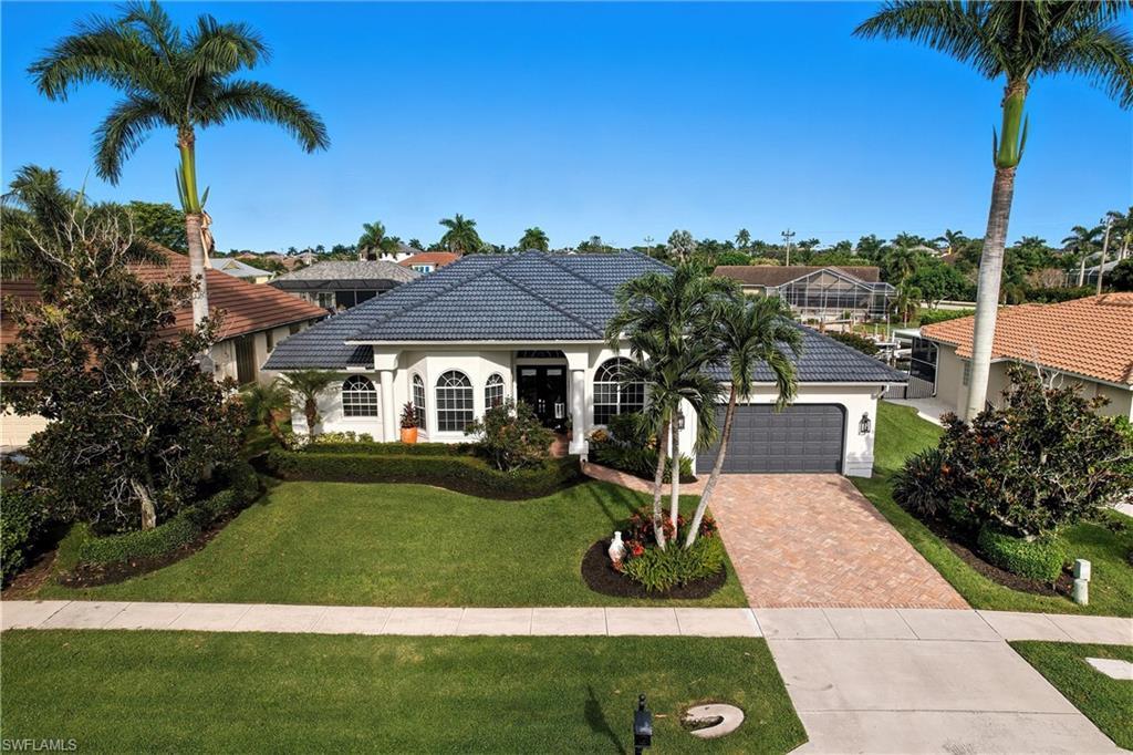 BEAUTIFUL!!! This completely renovated, 2,389 sq.ft. home, has 3 bedrooms, PLUS DEN, 2 full baths, formal dining, living room, family room, breakfast nook and double car garage. It has a walk around dock with boat lift for your boating access to the Gulf of the America and wonderful restaurants on the water. This bright and open split floor plan has all new wood like porcelain tile throughout entire house, upgraded roof in 2019, new interior and exterior paint, new upgraded light fixtures, brand new A/C, pool with water heater and water fall, electric roll down shutters, 15 ft. volume ceilings, three 10 ft. pocket doors which open up to the pool area, great for entertaining. Spacious master bedroom has beautifully remodeled master bathroom with stand alone tub and huge shower. The walk-in closet has been nicely done with California Closet built-ins. Kitchen has been remodeled with all new cabinets, quartz countertops and appliances. Top cabinets have under cabinet lighting and bottom cabinets are mostly pull out drawers, two lazy susan cabinets, and big pantry with pull outs. Breakfast nook has large mitered windows perfect for morning coffee. Laundry room has new washer and dryer and also quartz countertop with a stainless steel deep laundry sink. This house is conveniently located in a highly desirable area centrally located close to beaches, Mackle Park and restaurants and shops. THIS IS A DEFINITE MUST SEE!